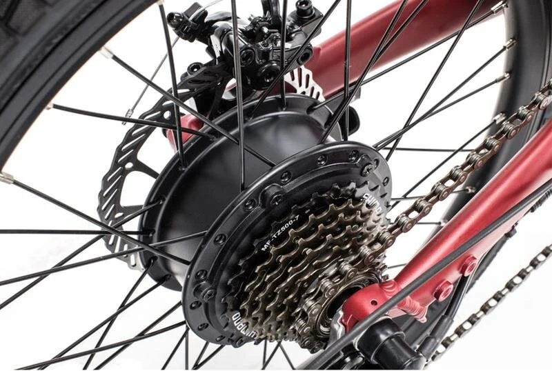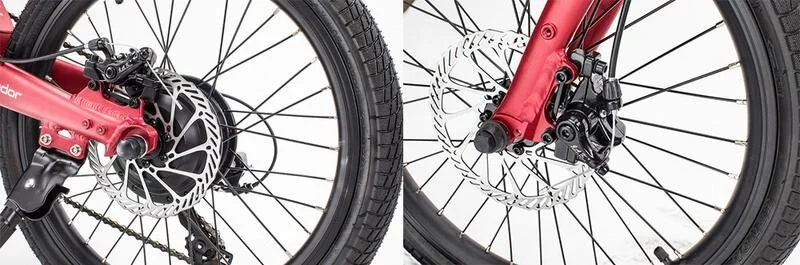 Customized 350W high speed geared brushless motor with enough pulling power so you can effortlessly conquer an 18° climb. Brushless motors are smoother, more efficient and no magnetic drag when you ride the bike without any power.